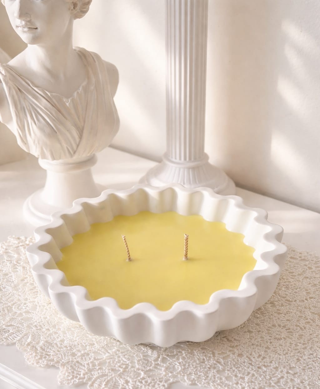 Cette bougie unique est entièrement réalisée à la main, du contenant sculpté avec soin à la coulée de la cire.