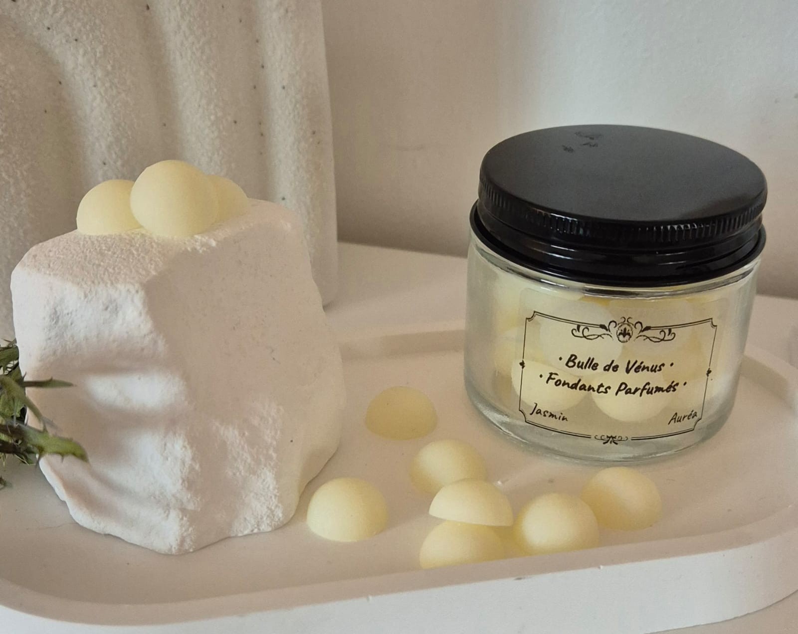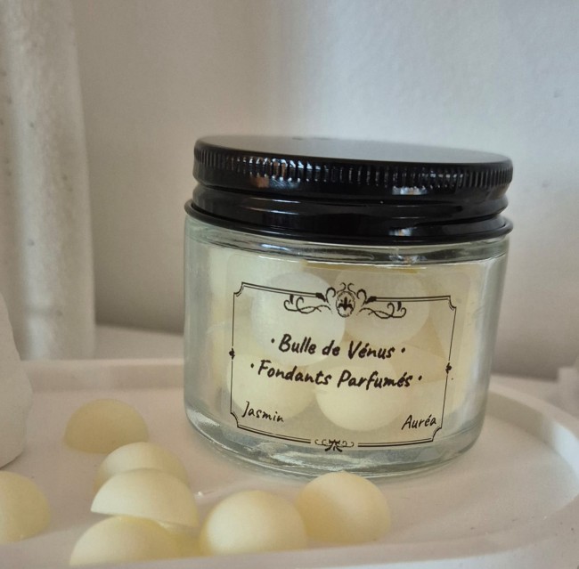 Chaque fondant est fabriqué à la main, avec de la cire végétale de soja, puis délicatement parfumé avec des senteurs de Grasse.
